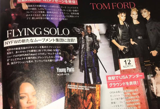 FORTUNA Tokyo picked up on Glitter magazine with Flying Solo on NYFW section with MARC JACOBS,TOMMY HILFIGER,TOM FORD.