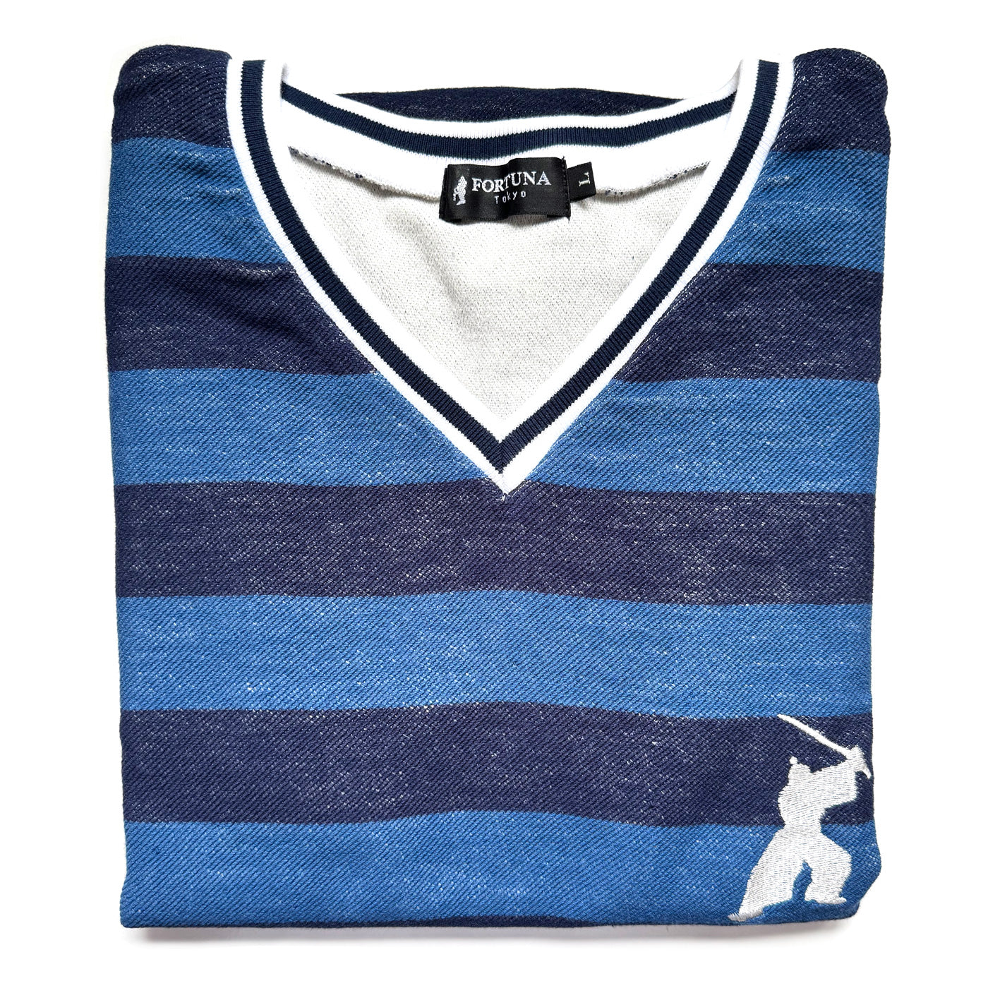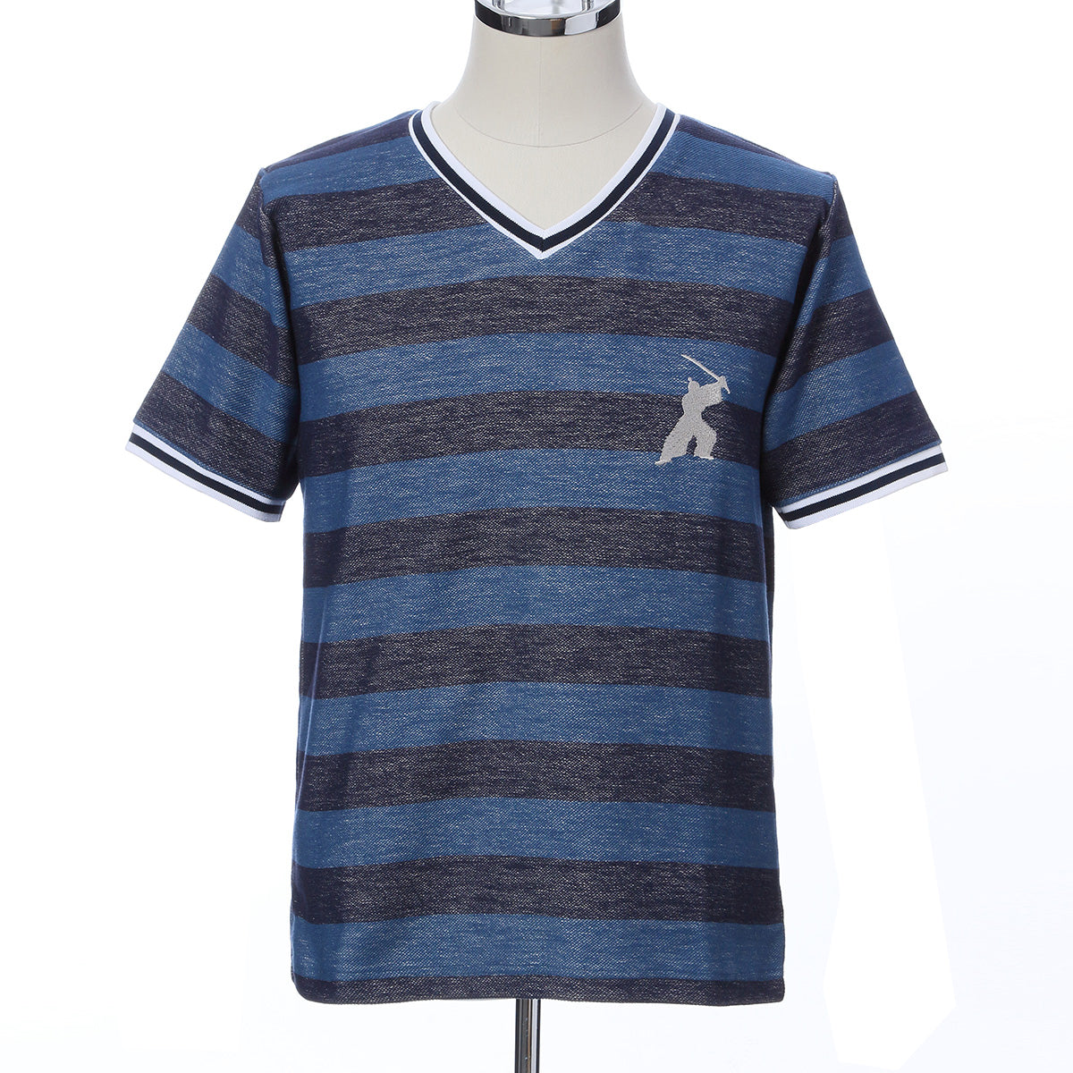 The Samurai V-neck Horizontal Stripes Shirt is made in Japan. Samurai’s embroidery is impressive. Material has stretchability and comfortable to wear.