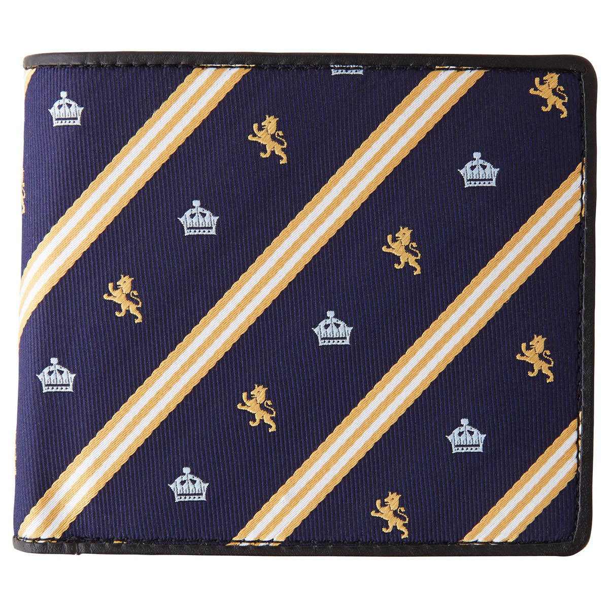 Bi-fold wallet Leather Cowhide - 08. King Lion Pattern Navy Blue/Black Handmade by craftsmen Made in Japan