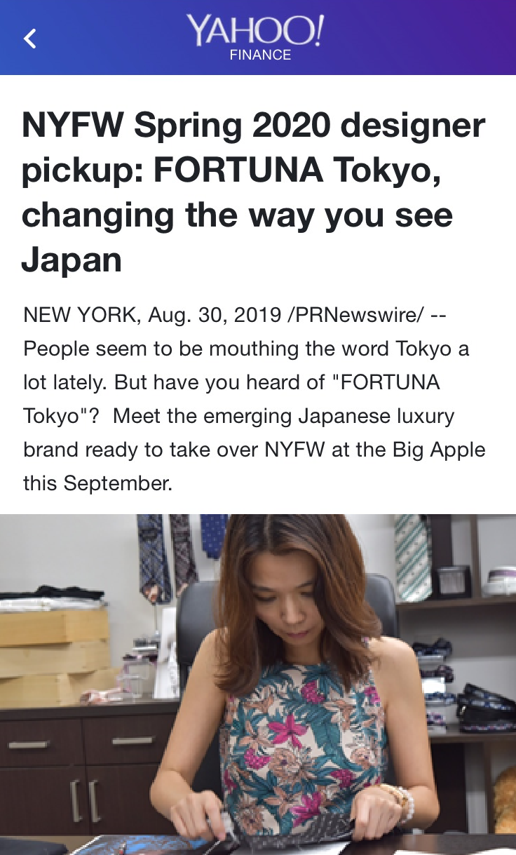 Picked up on Yahoo News. FORTUNA Tokyo is comming to New York Fashion Week on September 6th 6:00pm at Pier 59 with Flying Solo. Young Paris from Roc Nation and Eugenia Kuzmina, Russian-American actress, comedian and model will walk at the runway.